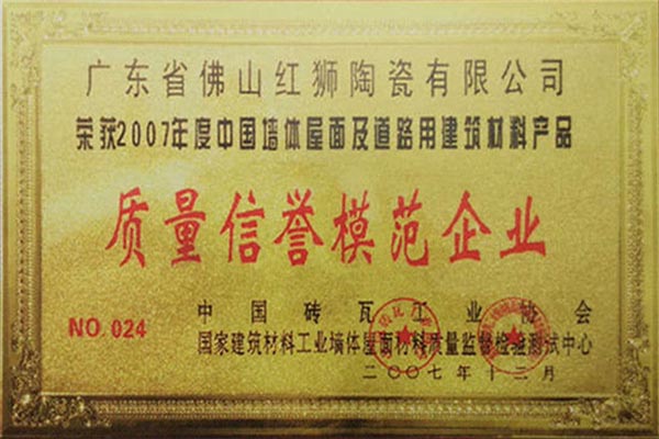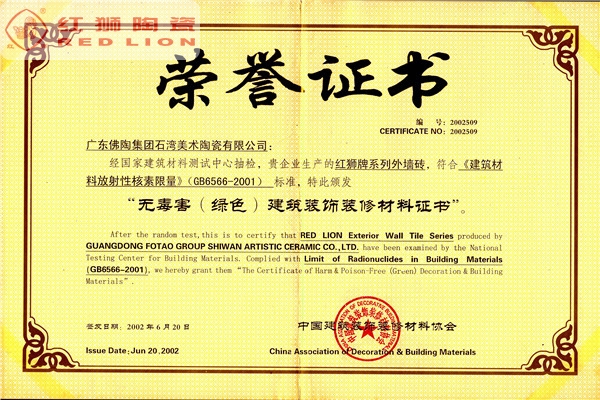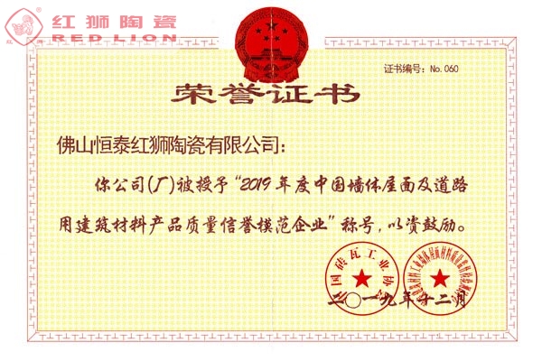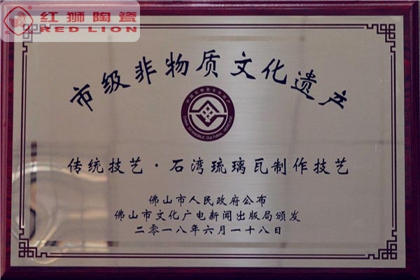 我司是廣東省內(nèi)唯一擁有“非物質(zhì)文化傳承”技藝的建材陶企,曾連續(xù)14年被評(píng)為廣東省重合同守信用企業(yè);1999年起持續(xù)通過ISO質(zhì)量管理體系認(rèn)證、ISO環(huán)境管理體系認(rèn)證、OHSAS職業(yè)健康安全管理體系認(rèn)證;2002年成立了經(jīng)佛山市科學(xué)技術(shù)局、佛山市發(fā)展計(jì)劃局、佛山市經(jīng)濟(jì)貿(mào)易局認(rèn)證的佛山市工程技術(shù)研究開發(fā)中心;2003年“紅獅”牌獲選廣東省著名商標(biāo);2005年被佛山市知識(shí)產(chǎn)權(quán)局授予佛山市知識(shí)產(chǎn)權(quán)示范企業(yè);2008年被廣東省建筑材料行業(yè)協(xié)會(huì)評(píng)為廣東省建材質(zhì)量信用企業(yè)、廣東省建材行業(yè)節(jié)能減排優(yōu)秀企業(yè)、改革開放30年廣東省建材行業(yè)突出貢獻(xiàn)企業(yè);2009年被廣東省科學(xué)技術(shù)廳評(píng)為廣東省民營(yíng)科技企業(yè)、高新技術(shù)企業(yè);2009-2018年被評(píng)為廣東省清潔生產(chǎn)企業(yè);2017年被廣東省循環(huán)經(jīng)濟(jì)和資源綜合利用協(xié)會(huì)認(rèn)定為廣東省資源綜合利用企業(yè);2017年作為石灣琉璃瓦制作技藝傳承保護(hù)單位列入佛山市非物質(zhì)文化遺產(chǎn)項(xiàng)目名錄;2017及2018年被授予廣東省名牌產(chǎn)品。